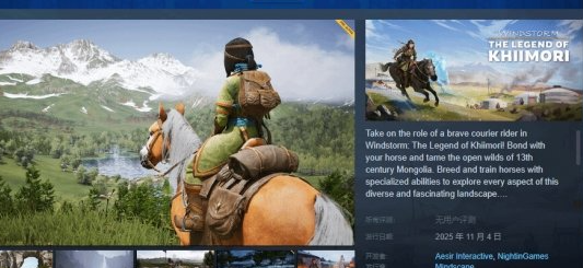 2025年11月4日正式发售上线开启,游戏是一款历史探索生存作品,游戏添加了随机变化的天气元素内容玩法 生存探索游戏《风暴:成吉思汗的传说》终于揭开发售日期时间,还有资料介绍内容玩法
