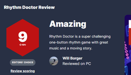 节奏游戏《节奏医生》1.0正式版本推出获得获得高评分与特别好评