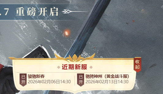 新服开启上线时间:2026年2月13日14:30上线新服