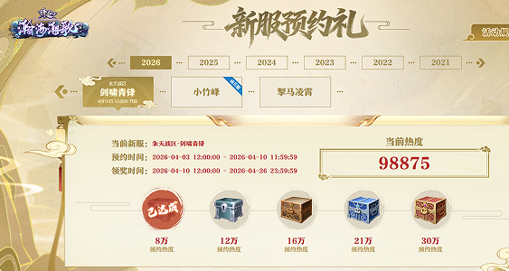 新服开启预约礼时间;2026年4月3日中午12点至2026年4月10日 11:59:59