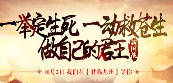 《君临九州》这次宣布2017年10月2日开启新服名称为王者,这款游戏能够召集乱世英雄,征战厮杀,成就千秋霸业,展开一场激烈的掀起乱世新篇章,待我君临九州时,定能雄霸天地间!!10月2日英雄之争,等您来战