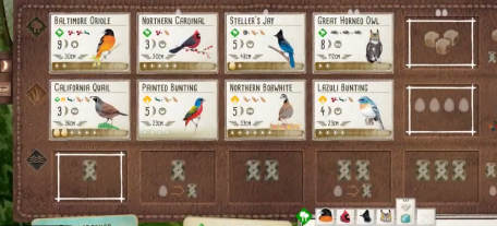 是一款鸟类主题策略卡牌,里面充满有趣玩法,清新愉快玩法,适合一名至五名玩家,作为鸟类发烧友,你在游戏中目标就是吸引更多鸟儿 进入你的自然保护区