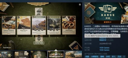 “《KARDS》目前揭开领取活动结束时间为12月29日,里面包含丰富内容,可以运用策略对战,实现海陆空战场对决等等 该游戏支持中文,好评赞美也非常高