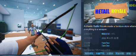 “近日2022年5月份《Retail Royale》揭开一款获得好评游戏。免费开玩,目前登陆Steam特别好评