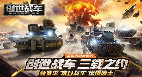 《创世战车》如果对战场载具对战游戏有兴趣的话,可以尝试一下,, 新赛季“末日战车”爆燃废土,新版本也很快上线,三年来战场战车一直在废土行驶,带上朋友一起战斗吧 ”